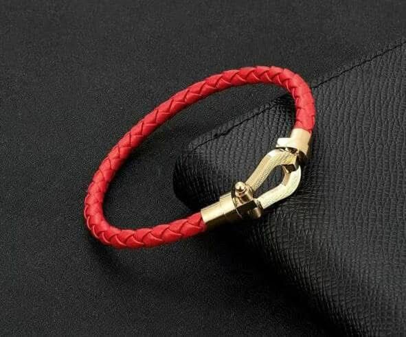 Un bracelet élégant en cuir rouge tressé avec un fermoir robuste en or. Idéal pour les hommes et les femmes qui apprécient le style et la qualité. Fabriqué en cuir durable avec une finition soignée. Parfait pour une utilisation quotidienne ou comme accessoire de mode.