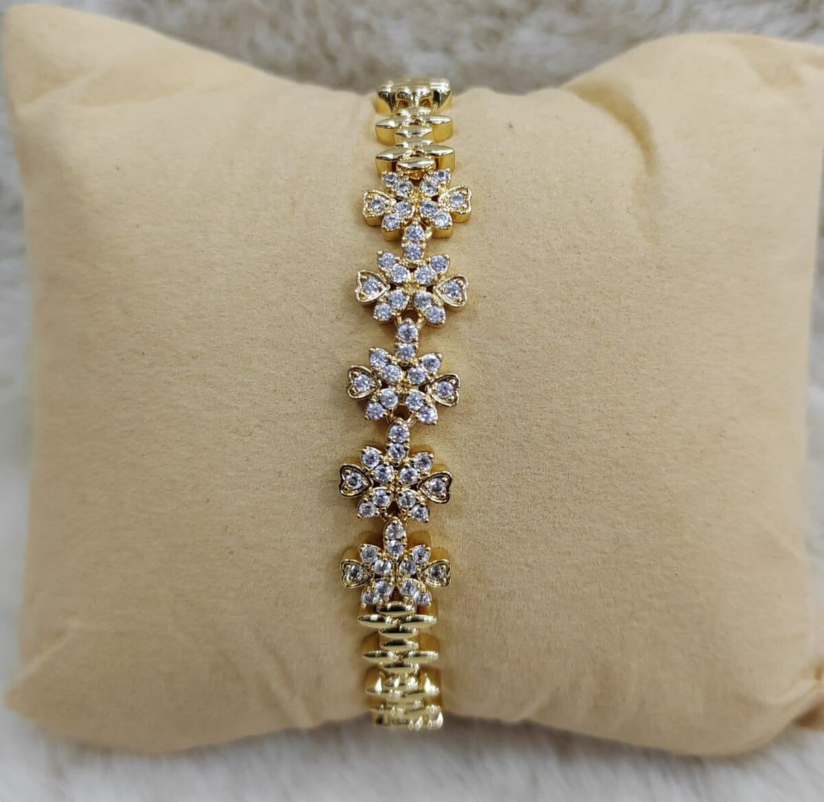 Ce magnifique bracelet en or orné de strass scintillants ajoutera une touche d'élégance à n'importe quelle tenue. Parfait pour les occasions spéciales ou comme cadeau spécial. Brillez avec style et sophistication.