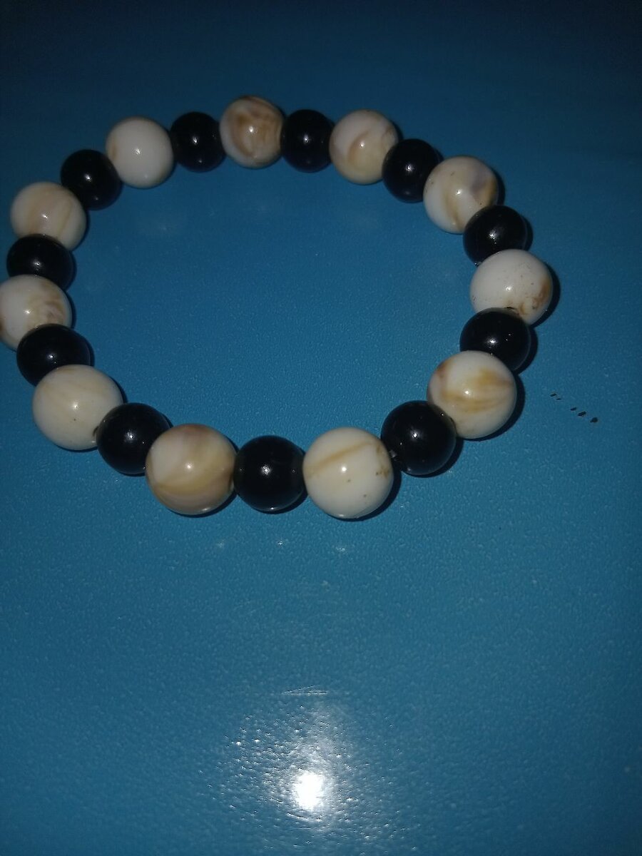 Élégant bracelet en perles naturelles combinant des tons noirs et blancs. Parfait pour ajouter une touche de sophistication à votre tenue quotidienne. Idéal pour toutes les occasions.