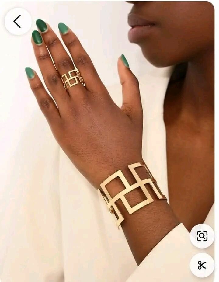 Ce duo chic de bracelet et bague dorés apporte une touche moderne et sophistiquée à toutes vos tenues. Fabriqué avec des matériaux de qualité, cet ensemble est parfait pour les occasions spéciales ou pour rehausser votre look quotidien. Un choix élégant pour toute femme aimant les accessoires brillants et élégants.