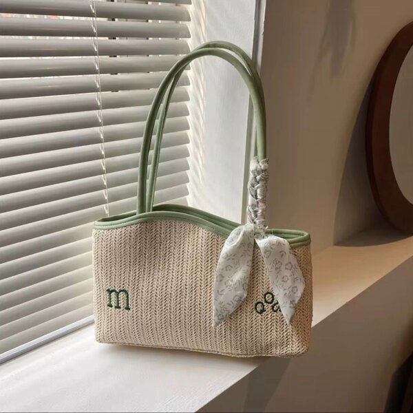 Sac en paille avec ruban pour femme