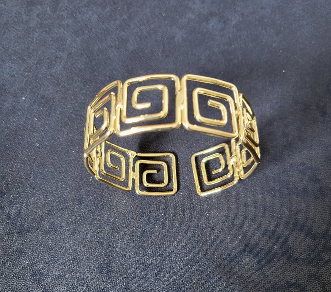 Ajoutez une touche d'élégance à votre tenue avec ce bracelet au design géométrique unique. Parfait pour les occasions spéciales ou pour agrémenter votre style quotidien, ce bijou raffiné et moderne est un véritable accroche-regard. Son allure sophistiquée en fait un cadeau idéal pour vous-même ou vos proches. Associez-le à d'autres accessoires dorés pour un look harmonieux et chic.