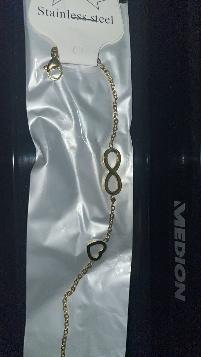 Élégant bracelet en acier inoxydable avec des motifs infini et cœur. Idéal pour ajouter une touche d'élégance à votre tenue quotidienne ou pour un cadeau spécial.
