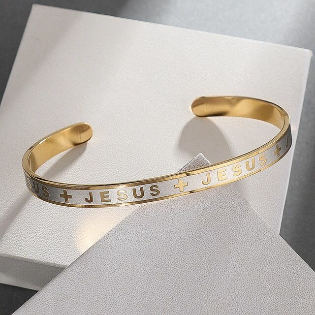 Embrassez votre foi avec ce bracelet ouvert élégant en acier inoxydable, mettant en avant l'inscription "Jesus". Parfait pour les moments spirituels ou comme cadeau inspirant. Le design chic et minimaliste en fait un accessoire quotidien idéal qui complète n'importe quelle tenue tout en affirmant vos croyances. Offrez-vous ou à vos proches un symbole de dévotion et de style.