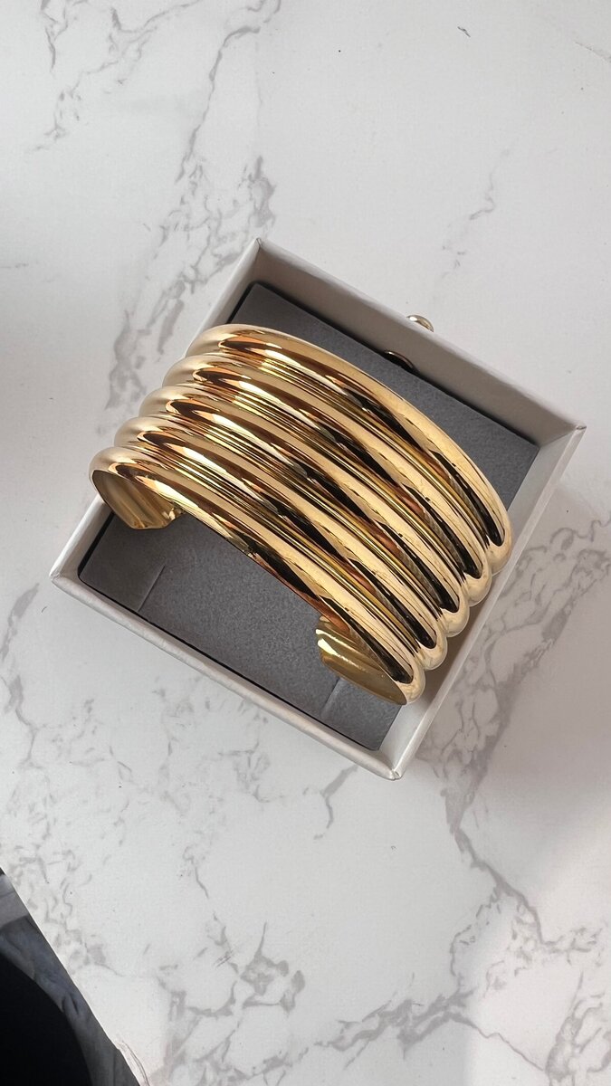 Ce bracelet large doré est l'accessoire idéal pour ajouter une touche d'élégance à vos tenues. Avec son design moderne et sophistiqué, il se porte facilement pour toutes les occasions. Fabriqué avec des matériaux de haute qualité pour une durabilité exceptionnelle.