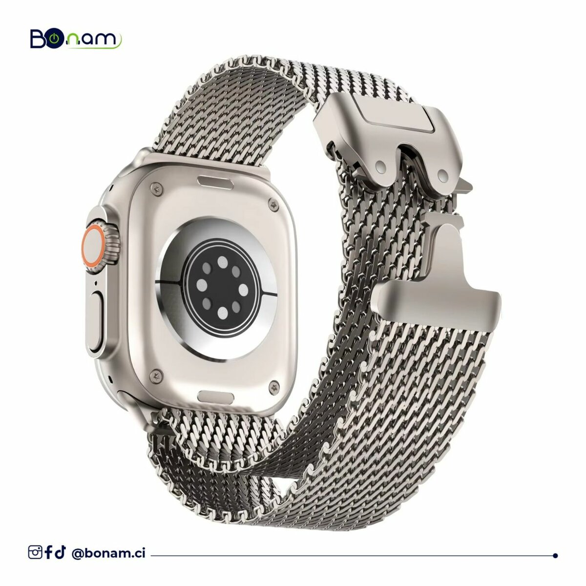 Élevez votre style avec ce bracelet Milanais en titane naturel, conçu pour les Apple Watch de 42mm à 49mm.