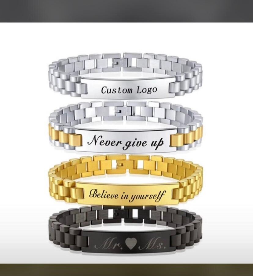 Adoptez le style avec ce bracelet personnalisable en acier inoxydable. Idéal pour un cadeau unique, ajoutez-y votre nom ou un message inspirant. Parfait pour toute occasion spéciale ou simplement pour vous démarquer au quotidien.