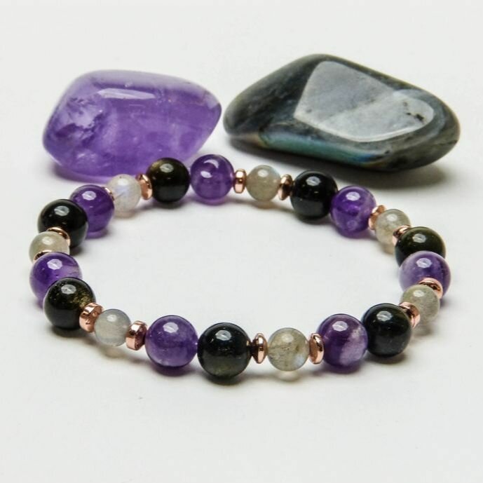 *améthyste, labradorite, obsidienne* Ce bracelet favorise lélévation spirituelle tout en assurant une protection énergétique.
