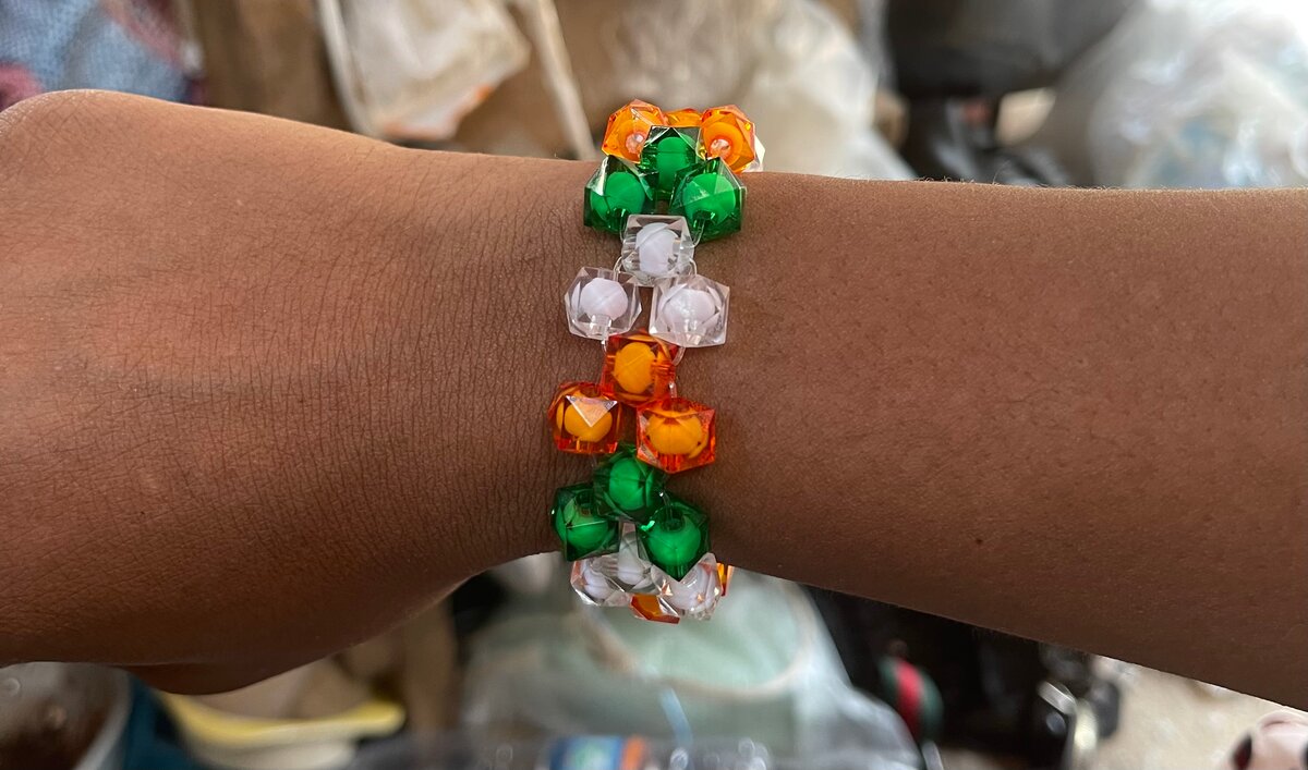 Bracelet artisanal en perles colorées, idéal pour ajouter une touche de style et de couleur à votre tenue. Confortable et léger, parfait pour une utilisation quotidienne ou pour des occasions spéciales. Un accessoire unique qui complète parfaitement votre look.