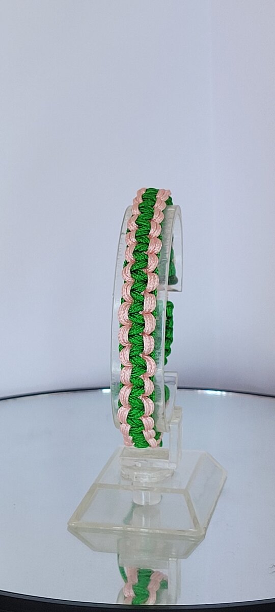 Adoptez ce bracelet tissé à la main, alliant élégance et simplicité. Les couleurs vert et rose se marient parfaitement pour une touche unique à vos tenues. Idéal pour un look décontracté ou sophistiqué, ce bracelet est un accessoire incontournable pour sublimer votre style.
