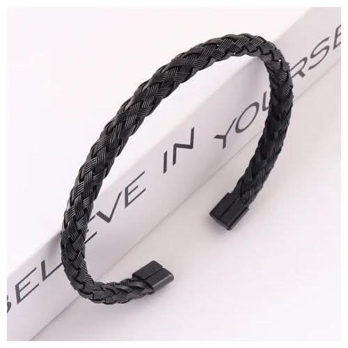 Ajoutez une touche d'élégance moderne avec ce bracelet tressé en acier noir durable. Parfait pour un look sophistiqué au quotidien.