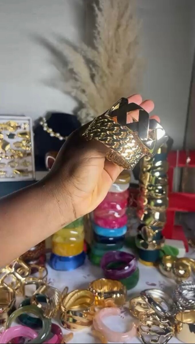 Découvrez notre collection de bracelets élégants en métal doré et résine colorée. Parfaits pour ajouter une touche de style à n'importe quelle tenue, ces bracelets sont un choix idéal pour les occasions spéciales ou le quotidien. Leur design varié et vibrant se marie facilement avec d'autres accessoires.