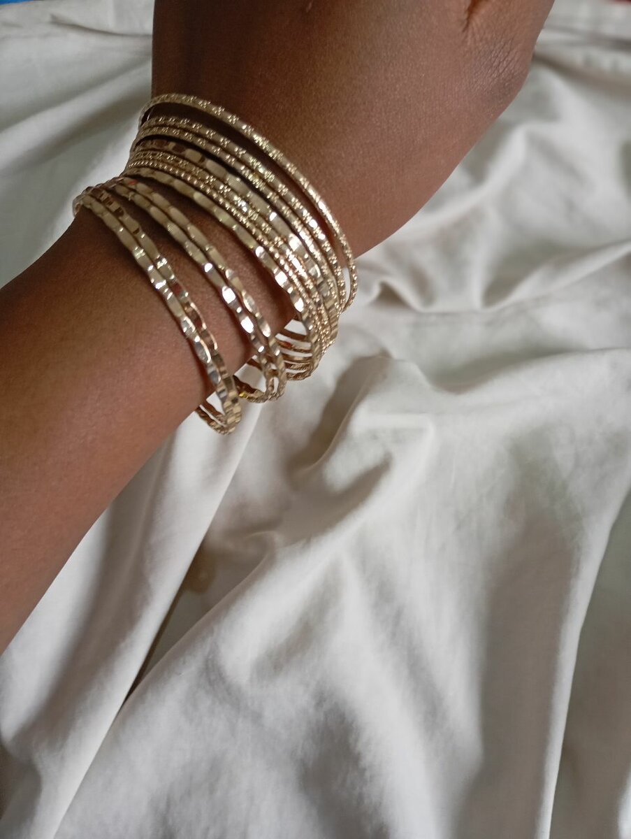 Ajoutez une touche de glamour à votre tenue avec ces magnifiques bracelets dorés. Parfaits pour toutes occasions, ces accessoires chics soulignent votre style unique. Fabriqués avec des matériaux de haute qualité, ils sont durables et confortables à porter. Idéal pour un cadeau ou pour se faire plaisir, ces bracelets s'associent facilement à tous les looks.