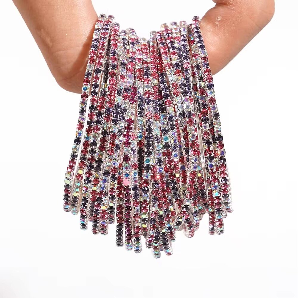 Ajoutez une touche d'éclat à votre tenue avec ces magnifiques bracelets élastiques incrustés de cristaux. Idéals pour toutes occasions, ces accessoires polyvalents offrent une variété de couleurs pour s'harmoniser à votre style personnel. Parfaits pour un look scintillant au quotidien ou pour des événements spéciaux. Offrez-vous ou faites plaisir à vos proches avec ces bracelets élégants et resplendissants.