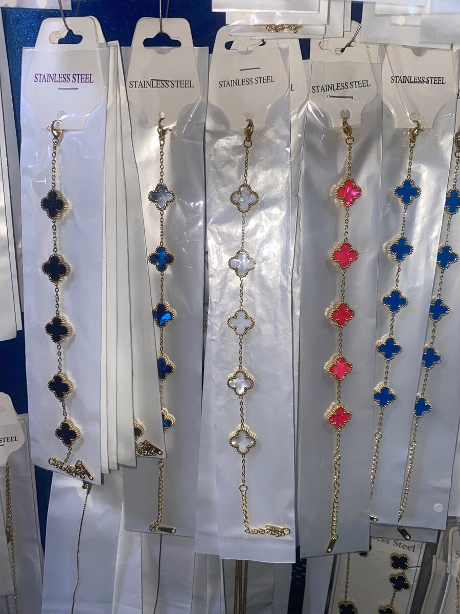 Découvrez nos bracelets élégants en acier inoxydable, agrémentés de pendentifs colorés en forme de trèfle. Parfaits pour ajouter une touche de couleur et de style à n'importe quelle tenue. Ces bracelets résistants sont idéaux pour un usage quotidien ou pour offrir en cadeau.