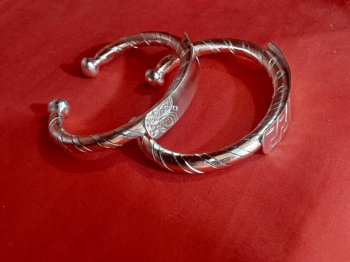 Élégants bracelets en argent avec motifs gravés. Parfaits pour ajouter une touche de sophistication à toute tenue. Idéal pour un usage quotidien ou des occasions spéciales. Fait main, un cadeau inoubliable. Diamètre ajustable.