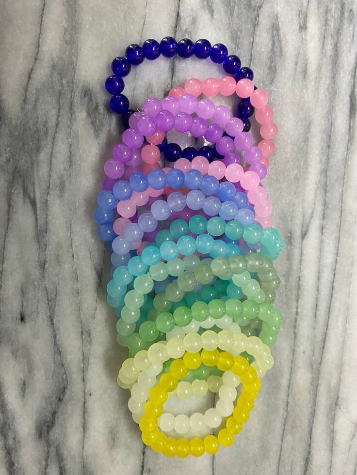 Colorés et élégants, ces bracelets en perles arc-en-ciel ajoutent une touche de gaieté à n'importe quelle tenue. Idéal pour l'été ou pour offrir en cadeau.
