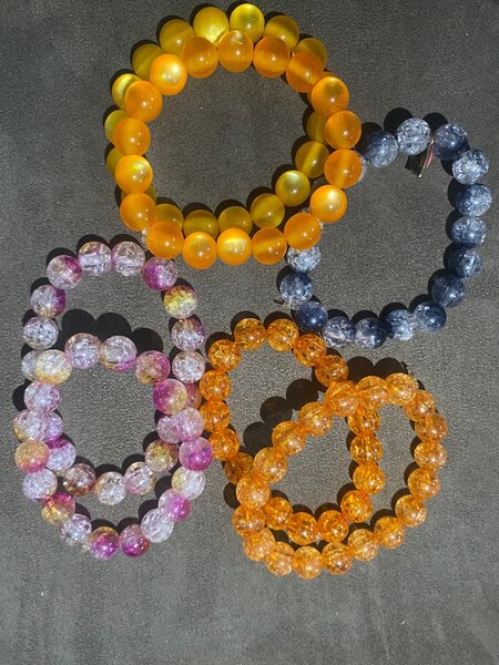 Ajoutez une touche de couleur à votre tenue avec ces magnifiques bracelets en perles violet et rose. Parfaits pour toute occasion, ils sont légers et confortables à porter.