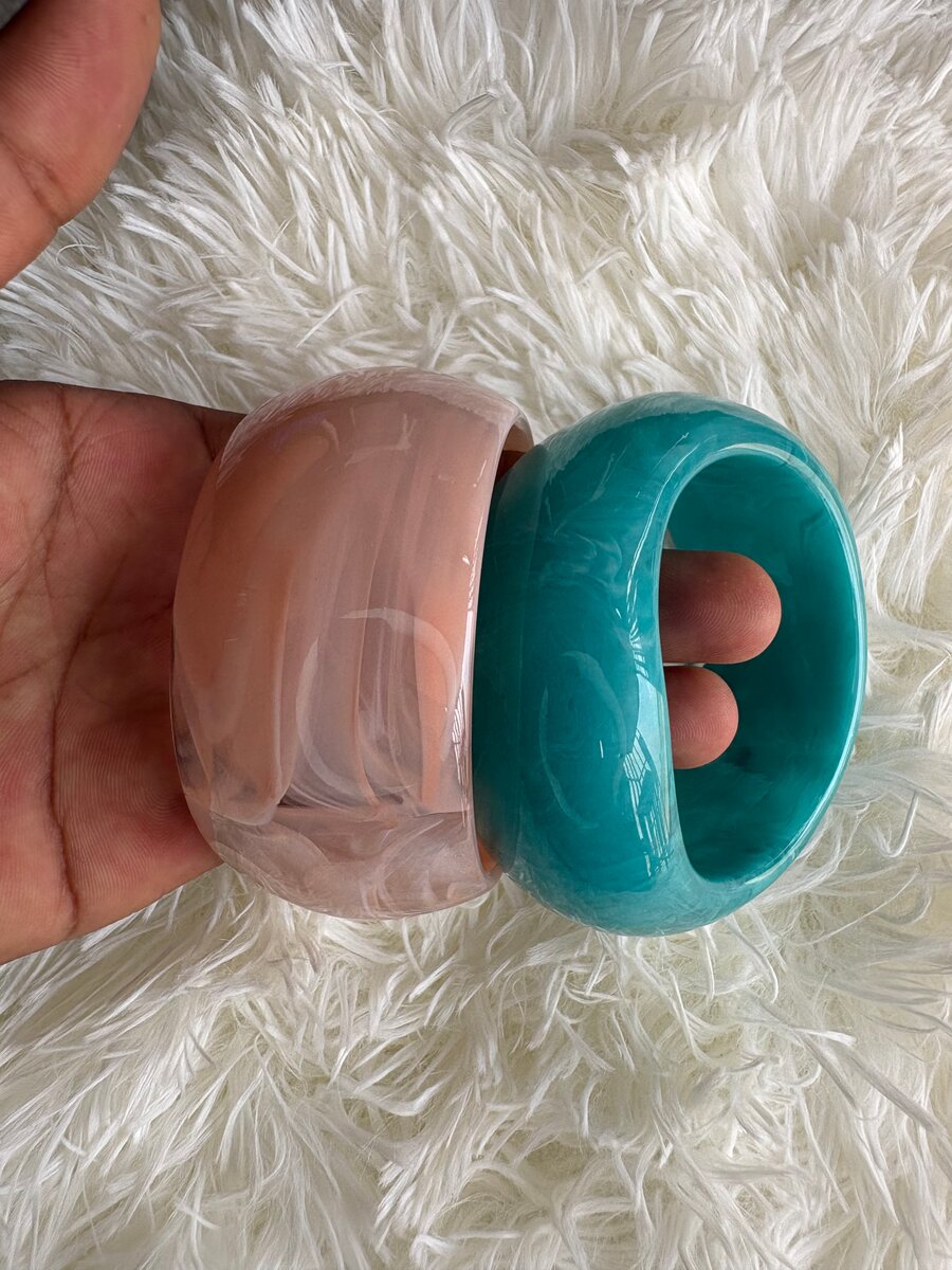 Ajoutez une touche d'élégance moderne avec ces bracelets en résine marbrée. Leur design unique et audacieux est parfait pour sublimer toutes vos tenues. Accessoire idéal pour les femmes cherchant à ajouter une note artistique et colorée à leur style.