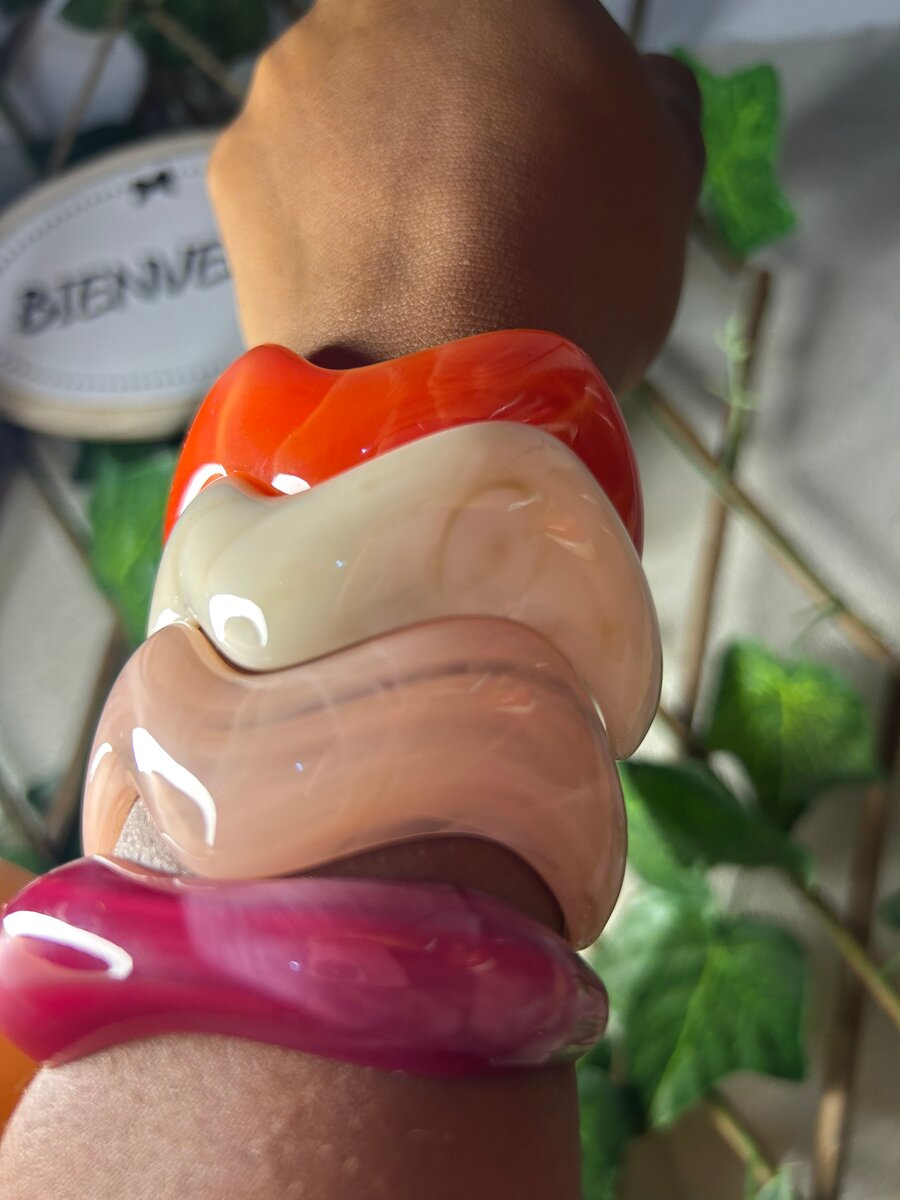 Ajoutez une touche de couleur et de style avec ces bracelets en résine vibrants. Parfaits pour toutes les occasions, ces accessoires s'associent facilement avec n'importe quelle tenue. Confortables et légers, ils sont idéaux pour un port quotidien ou pour rehausser une soirée spéciale. Exprimez votre individualité avec ces pièces modernes et tendance.