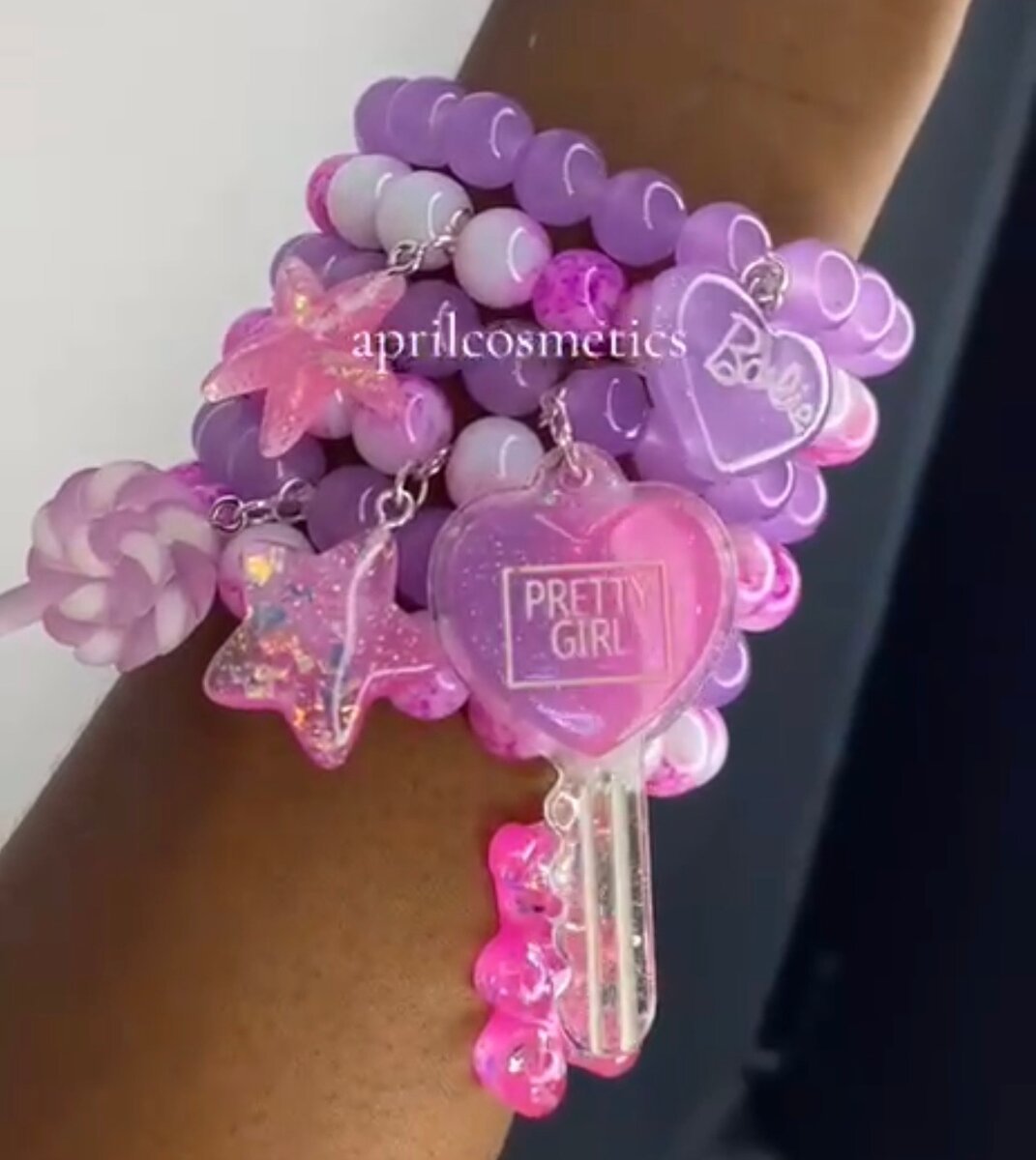 Ajoutez une touche de couleur et d'élégance à votre style avec ces bracelets fantaisie "Barbie". Fabriqués avec des perles colorées et ornés de charms ludiques, ces bijoux sont parfaits pour exprimer votre personnalité. Idéal pour toutes celles qui adorent se démarquer avec des accessoires uniques.