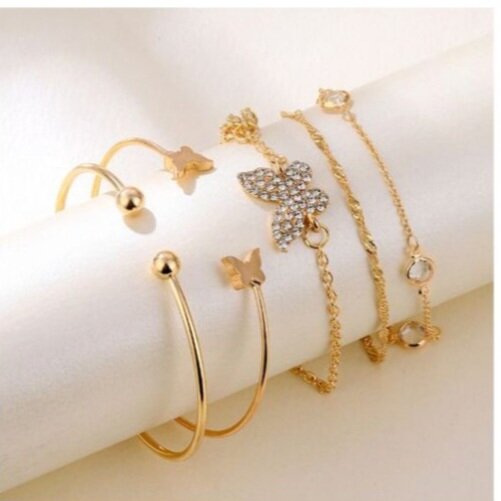 Ajoutez une touche d'élégance à votre tenue avec ces magnifiques bracelets dorés ornés de papillons. Parfaits pour les occasions spéciales ou pour donner du charme à votre style quotidien. Fabriqués avec des matériaux de qualité, ces bracelets sont durables et hypoallergéniques. Le choix parfait pour accentuer votre look avec grâce et féminité.