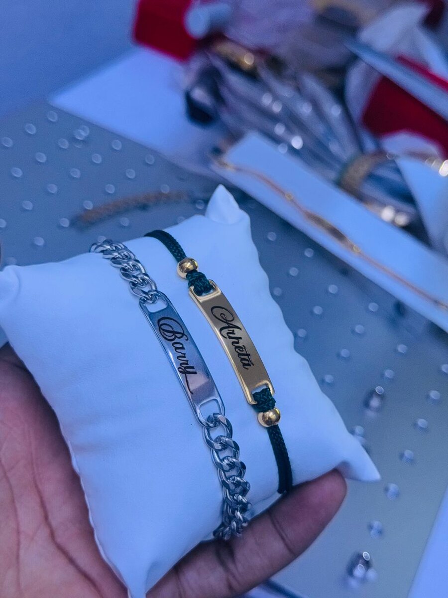Découvrez ces élégants bracelets personnalisés en duo, parfaits pour exprimer votre style unique. Fabriqués avec des matériaux de qualité, ces accessoires sont idéaux pour les couples ou les amis. Personnalisation disponible, faites-en un cadeau spécial !