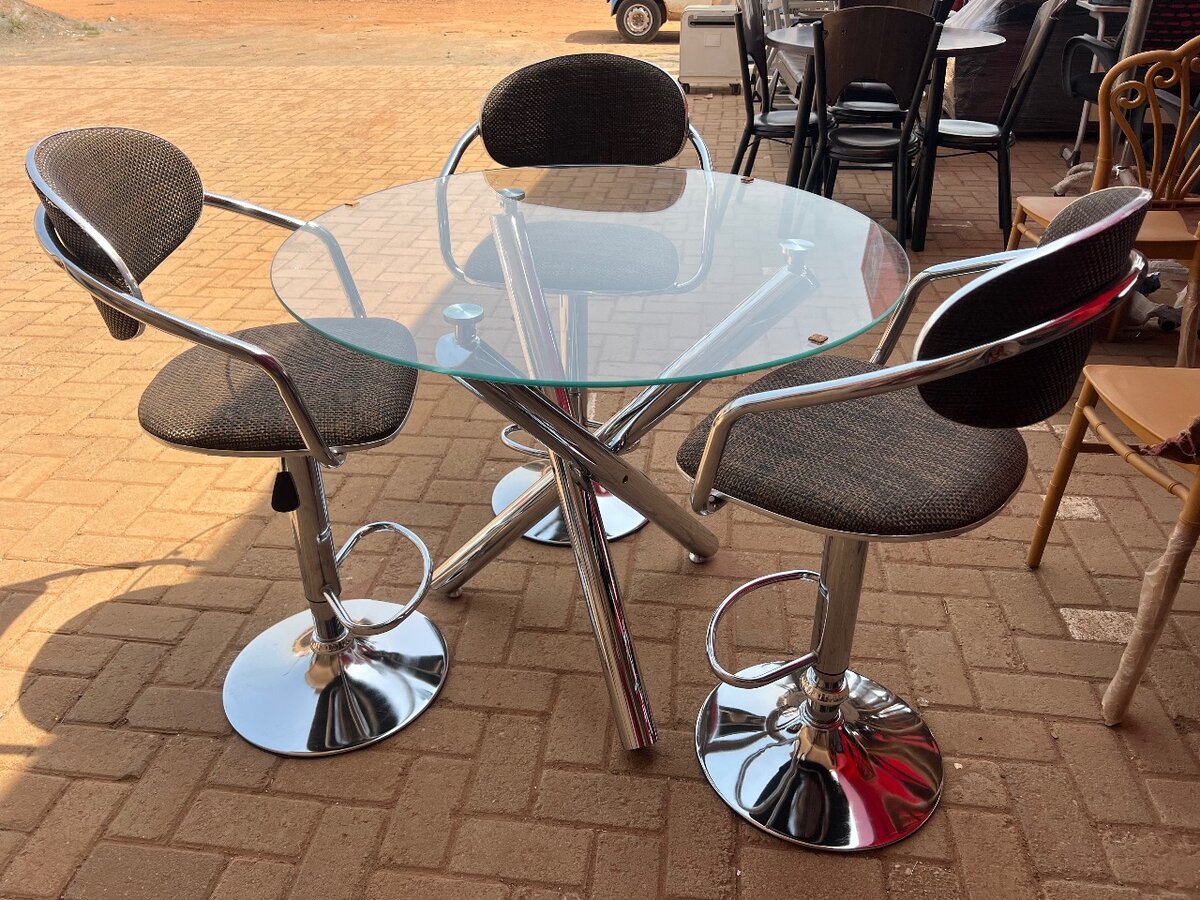 Tempered glass table with 3 adjustable height chairs