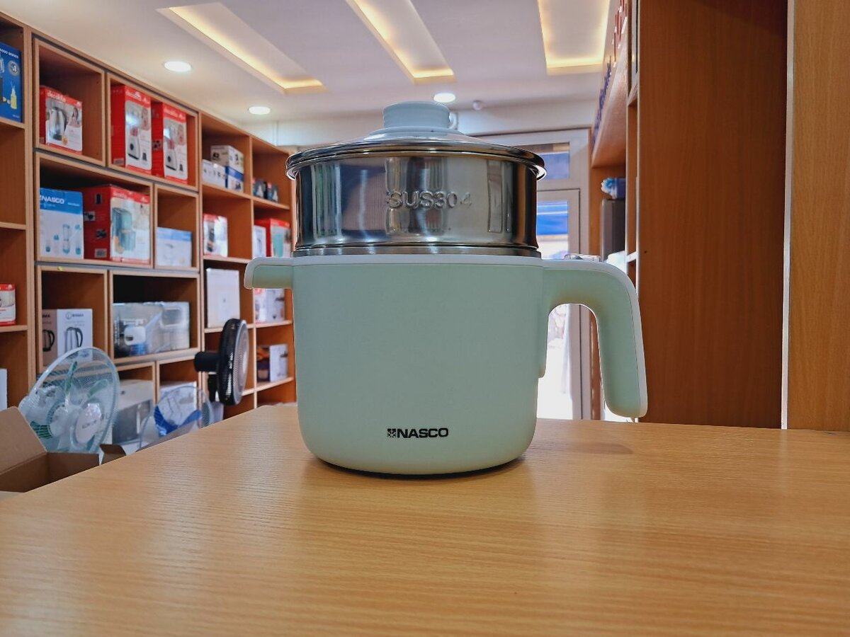 Contact us now for your Nasco Electric cooker now 1.2l capacity Plastic handle With SUS304 inner pot With SUS304 steamer Stainless steel heating element