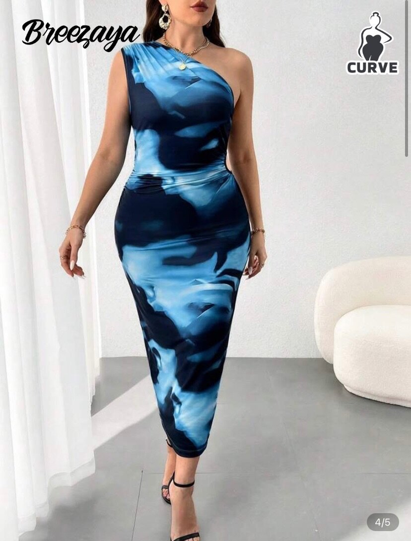 Step into elegance with the Breezaya One-Shoulder Dress. Featuring a stunning blue tie-dye pattern, this curve-hugging dress is perfect for evening occasions or a night out. The unique asymmetrical design adds a touch of sophistication while offering comfort and style. Ideal for confident women looking to make a statement.