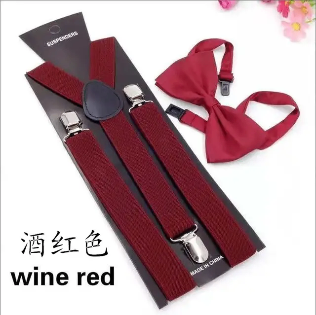 Ajoutez une touche d'élégance avec cet ensemble bretelles et nœud papillon rouge bordeaux. Idéal pour les événements spéciaux et les tenues formelles.
