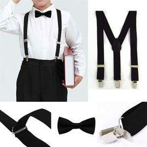 Ensemble chic de bretelles et nœud papillon noir, parfait pour les occasions formelles. Ajustables et confortables, idéals pour enfants lors de mariages ou cérémonies.