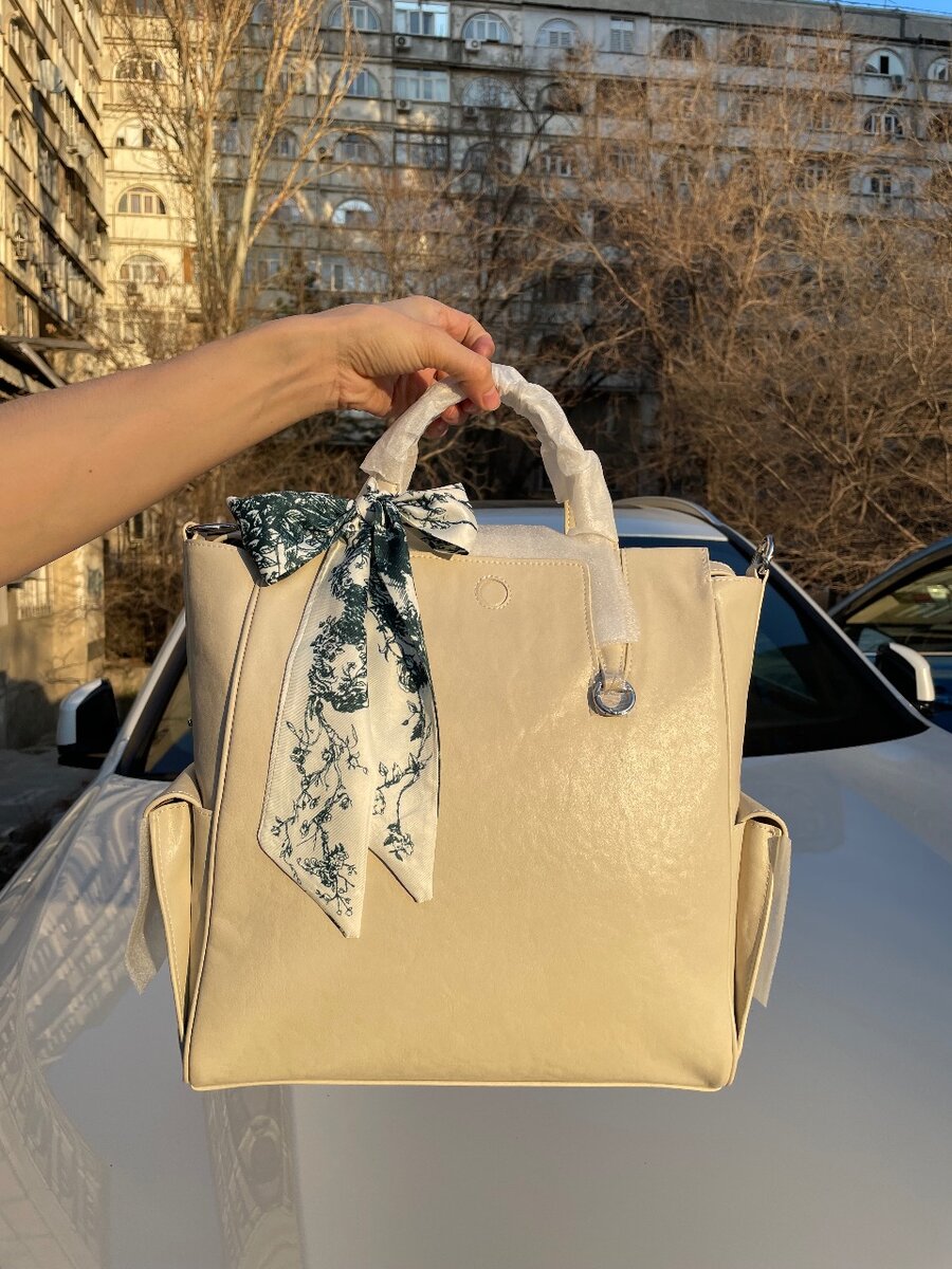 Эту белую сумку из коровьей кожи можно носить в руке или на спине. Особенно подходит для студентов колледжей и любителей пешего туризма.
