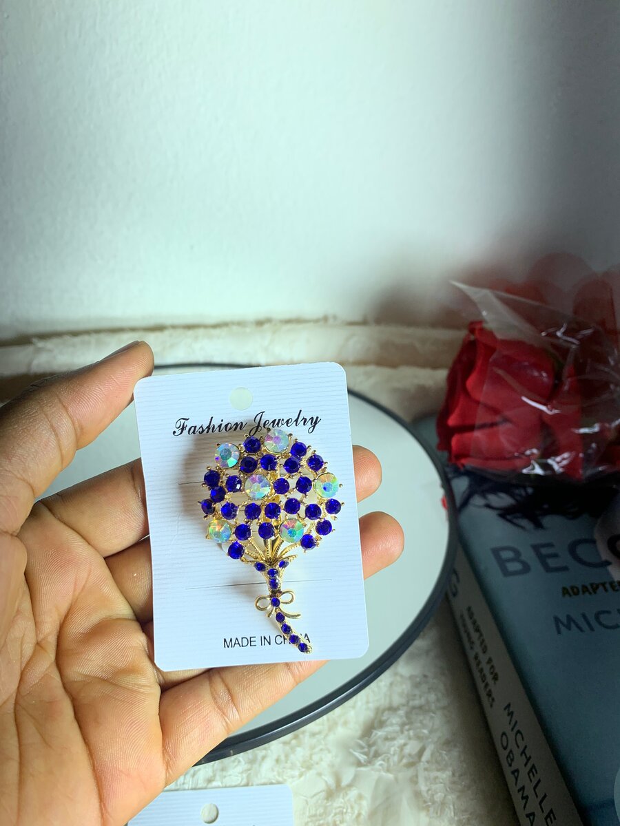 Ajoutez une touche d'élégance à votre tenue avec ce magnifique broche en strass bleu et or. Parfait pour les occasions spéciales ou pour rehausser votre style quotidien, ce bijou unique est un must-have pour toute collection de bijoux. Idéal comme cadeau!