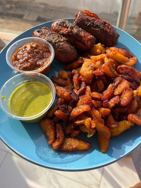 Découvrez nos délicieuses brochettes de viande grillées, accompagnées de plantains frits croquants et de sauces épicées. Parfait pour un repas convivial ou un apéritif entre amis. Savourez la tendreté de la viande associée à des épices exotiques. Idéal pour les amateurs de cuisine riche en saveurs.