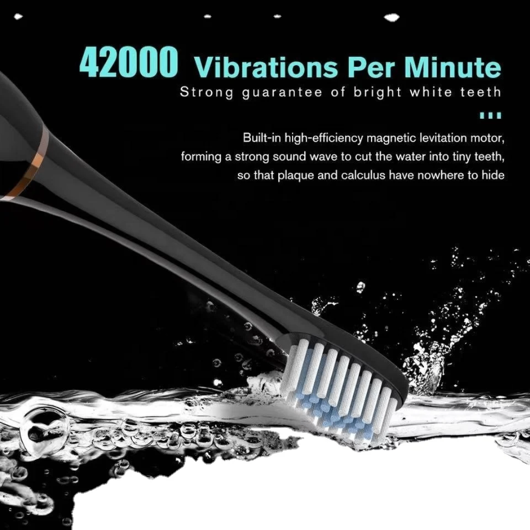 Découvrez la brosse à dents électrique X7 sonique, avec 42000 vibrations par minute pour un nettoyage en profondeur. Livrée avec 4 têtes de rechange, elle est idéale pour toute la famille.