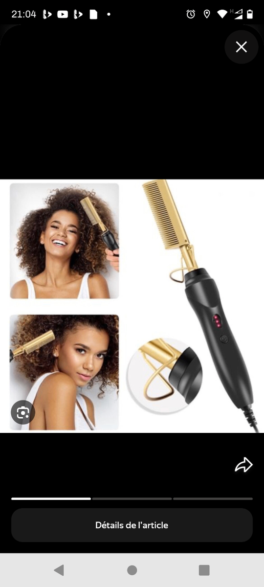 Transformez vos cheveux en quelques minutes avec notre brosse chauffante dorée. Son design ergonomique et sa surface dorée garantissent une distribution uniforme de la chaleur pour un coiffage parfait à chaque utilisation. Idéale pour lisser ou boucler tous types de cheveux, elle est votre alliée beauté au quotidien. Parfait pour une coiffure rapide et élégante à la maison ou en voyage.