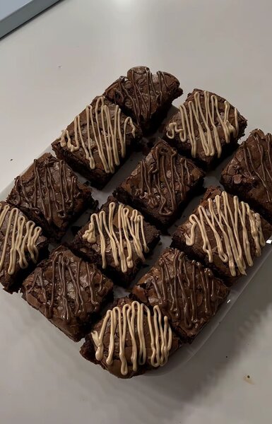 Découvrez nos brownies au chocolat, moelleux et décorés d'un filet de glaçage élégant. Parfaits pour les amateurs de chocolat, ces délices conviennent à toutes les occasions spéciales ou moments de gourmandise. Savourez leur texture fondante et leur arôme irrésistible. Un choix idéal pour partager avec vos proches lors de fêtes ou de goûters.