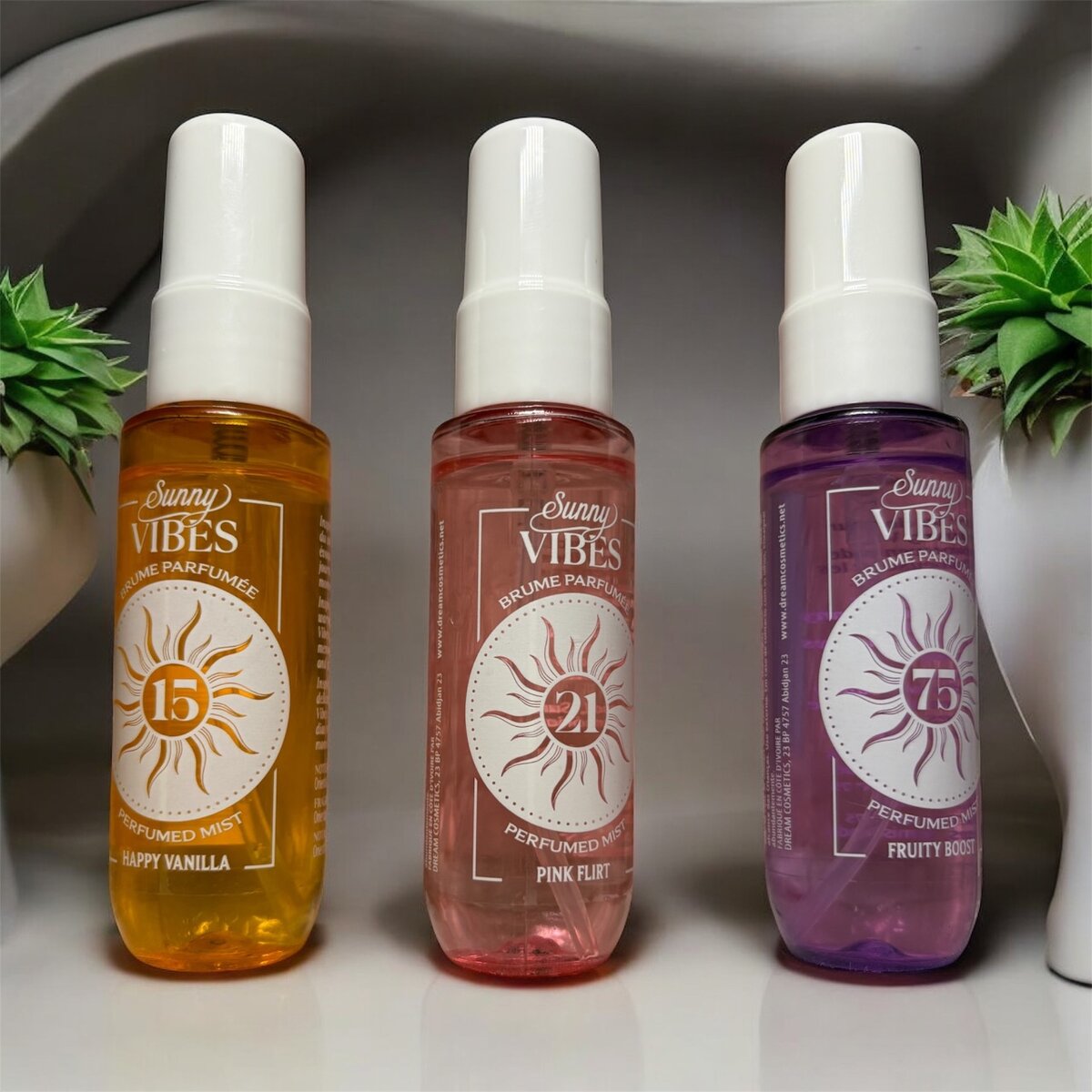 Découvrez notre collection enrichissante de brouillards parfumés Sunny Vibes, avec des senteurs exquises telles que vanille, flirt rose et éclat fruité. Idéal pour rafraîchir votre espace et éveiller vos sens.Douzaines à 5000fr