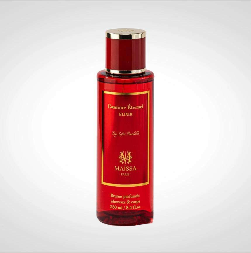 Découvrez l'élixir parfumé pour cheveux et corps Maïssa L'amour Éternel. Sa fragrance envoûtante sublime votre quotidien. Parfait pour une touche de fraîcheur à tout moment de la journée. Flacon 250 ml.