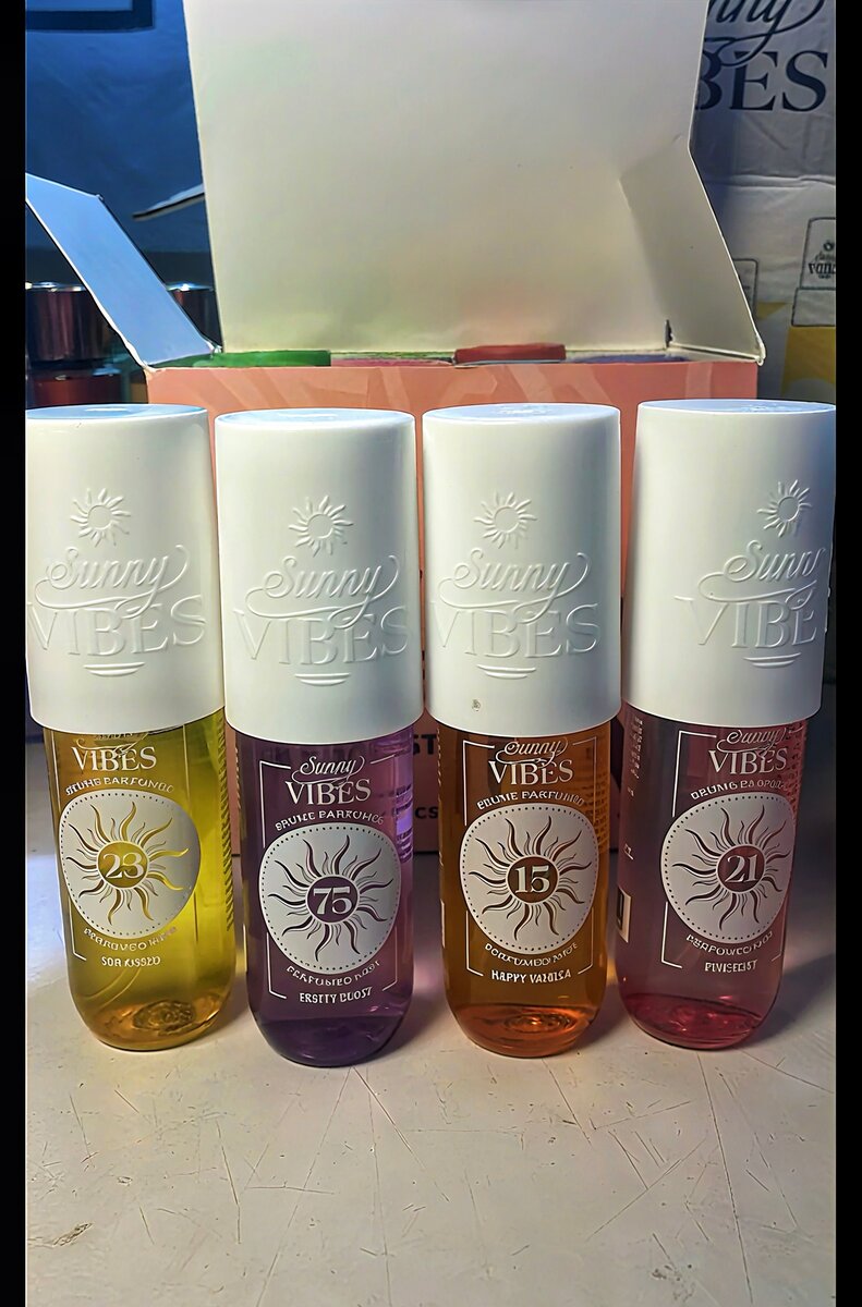 Découvrez l'ensemble Sunny Vibes, quatre brumes parfumées captivantes pour chaque humeur. Parfait pour rafraîchir votre journée avec des senteurs délicieuses et variées.