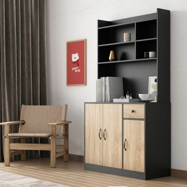 Ce buffet de cuisine moderne en bois apporte une touche chaleureuse à votre espace. Équipé de multiples compartiments de rangement, il est idéal pour organiser vos ustensiles de cuisine et appareils électroménagers. Sa finition élégante s'adapte à tout style de décoration. Parfait pour les amateurs de design et de praticité.