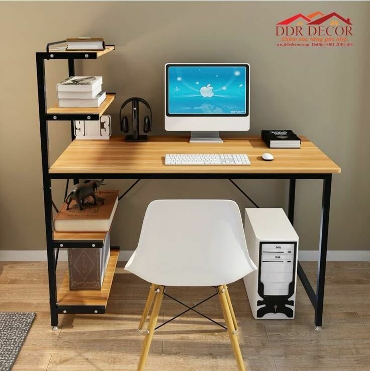 Optimisez votre espace de travail avec ce bureau moderne doté d'étagères intégrées. Parfait pour un bureau à domicile, il combine fonctionnalité et style élégant, idéal pour organiser livres et accessoires.