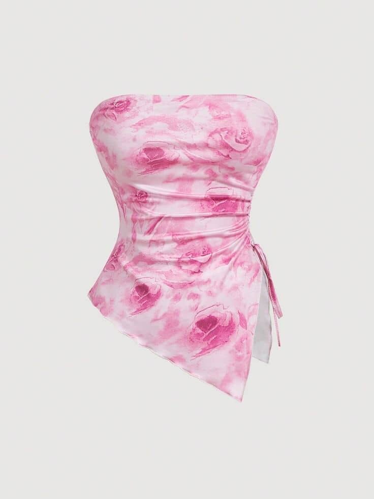 Ajoutez une touche de romance à votre tenue avec ce bustier asymétrique à imprimé floral rose. Parfait pour une soirée d'été, il s'adapte à toutes les morphologies grâce à sa coupe flatteuse. Confort et style réunis!