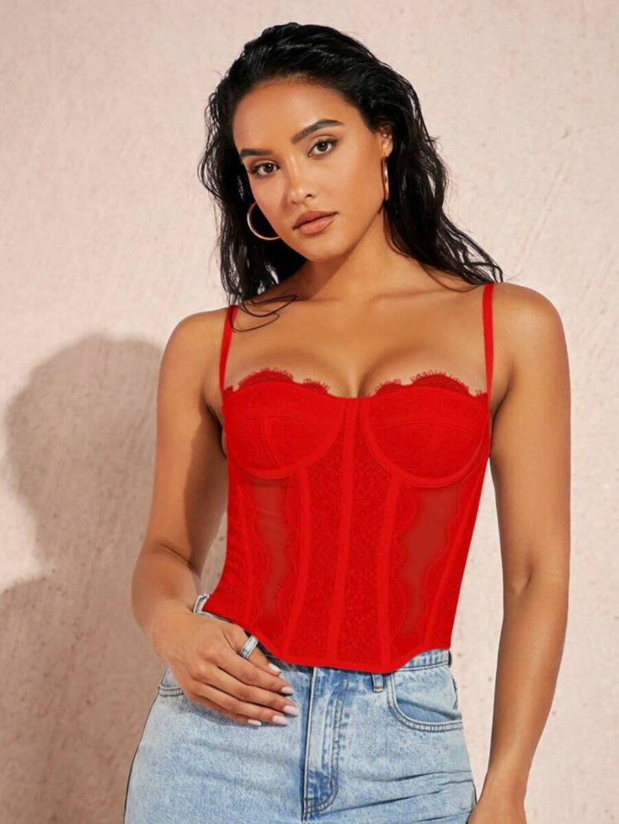 Ajoutez une touche de séduction à votre tenue avec ce bustier rouge en dentelle. Conçu pour les femmes qui aiment le style et le confort. Idéal pour une soirée ou comme pièce maîtresse de votre lingerie.