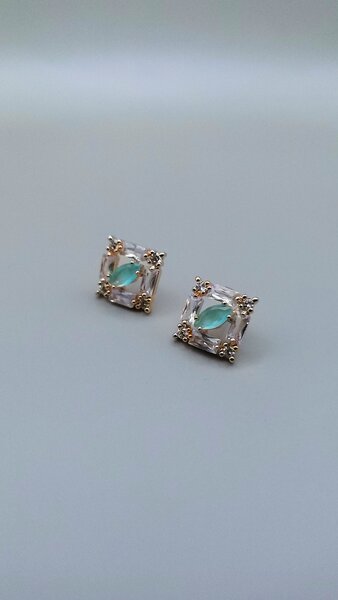 Imported Elegant Floral Stud Earrings With Rhinestone Border