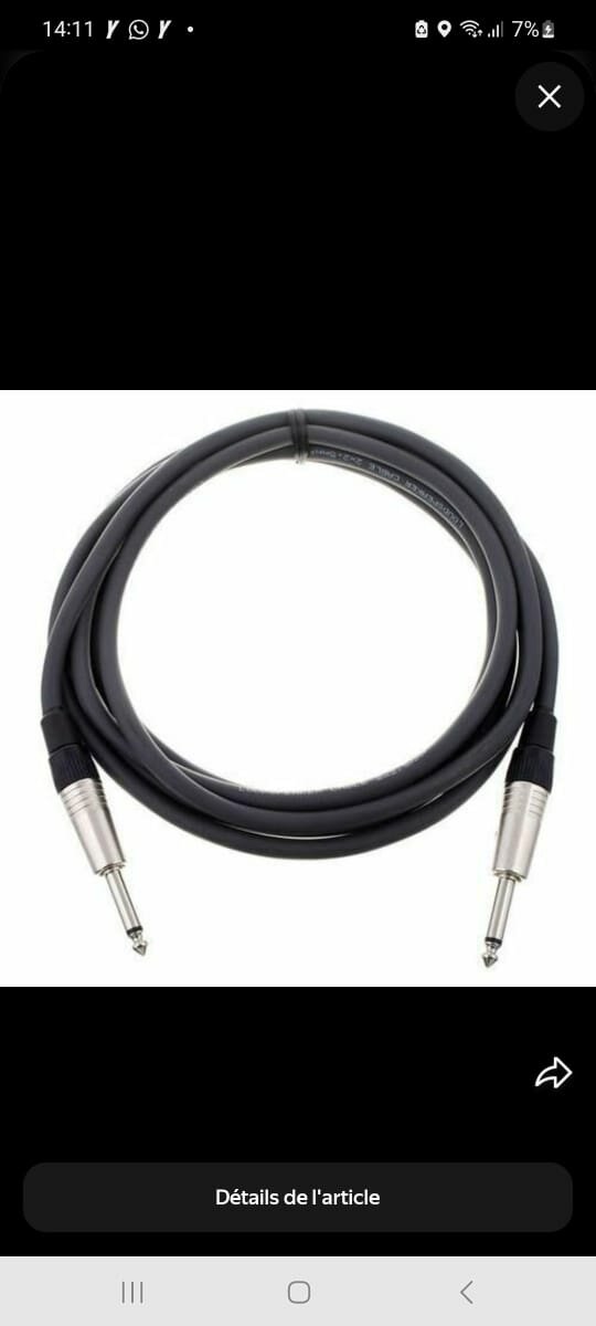 Câble Audio Jack 6.35mm Mâle/Mâle
