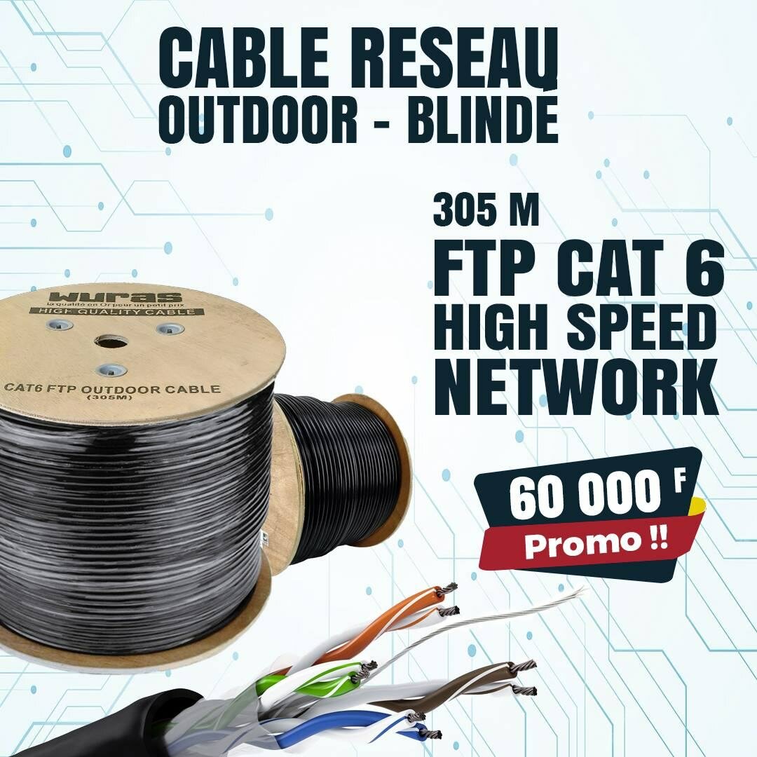 Câble réseau Cat6 FTP 305m pour installations extérieures. Haute vitesse pour une connectivité stable et performante. Idéal pour les professionnels et les entreprises cherchant des solutions de réseau robustes.
