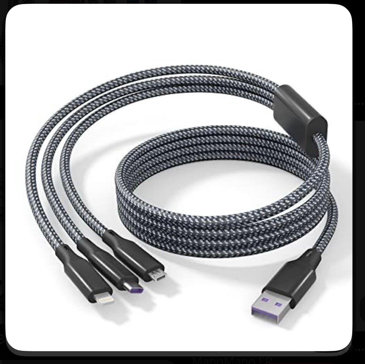 Câble USB 3 en 1 multi-connectique pour smartphones et tablettes. Conçu pour une charge rapide et une synchronisation des données, il est compatible avec les appareils Android, iOS et autres. Léger, durable, parfait pour une utilisation quotidienne et en déplacement.