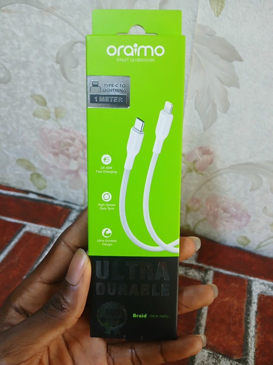 Profitez d'une charge rapide et efficace avec le câble Oraimo USB-C vers Lightning de 1 mètre. Ultra résistant et parfait pour tous vos appareils Apple, ce câble est idéal pour la maison ou le bureau.